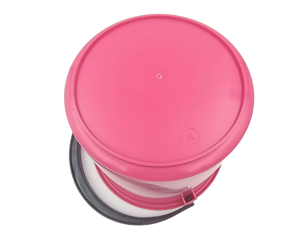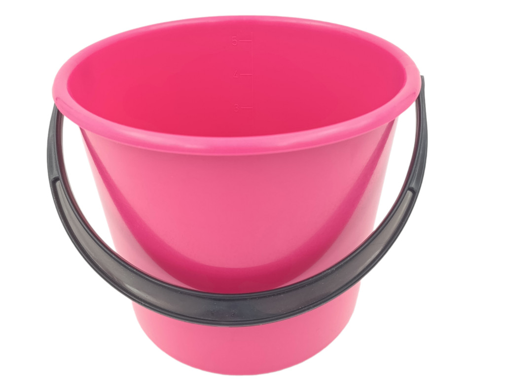 Plastový kbelík o objemu 5l s měrkou.