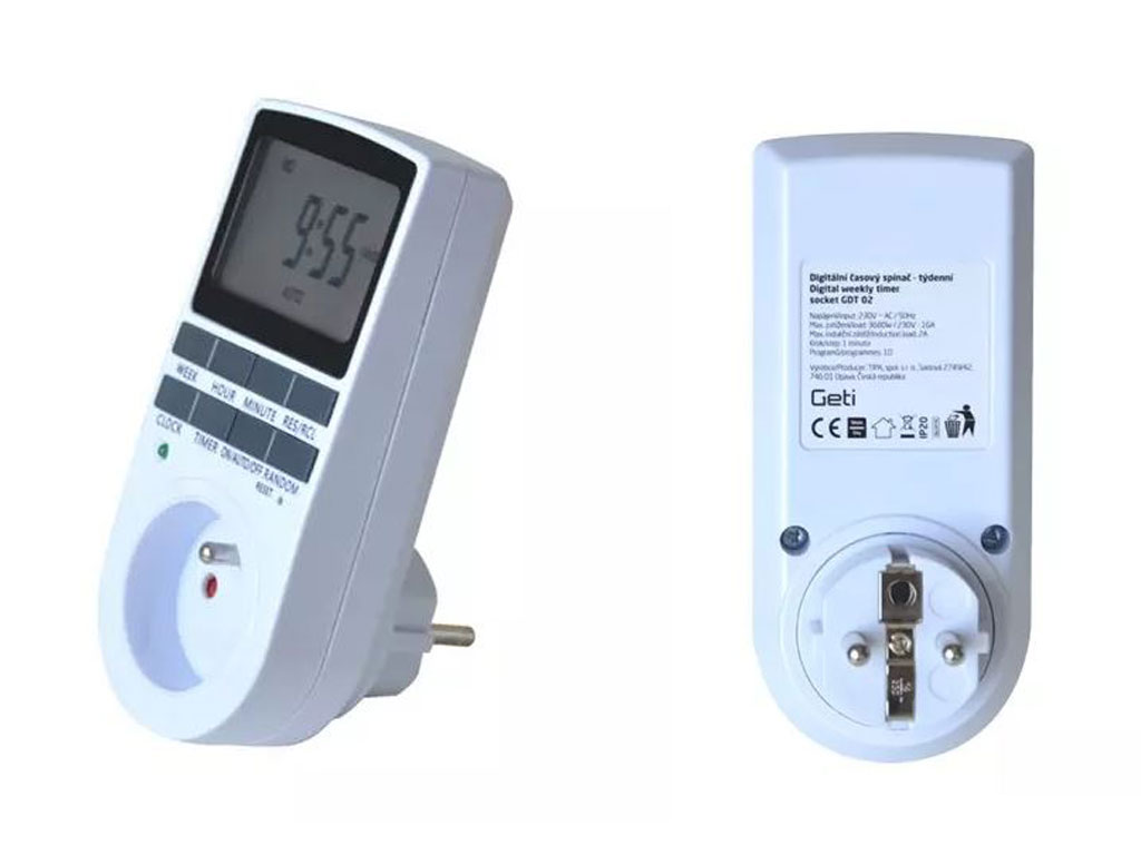 Plně programovatelná spínací zásuvka s týdenním i denním cyklem spínání. Tyto spínací hodiny mohou i ve Vaší nepřítomnosti opakovaně spínat a vypínat například topení, lampu nebo rádio. Programování je velmi jednoduché, takže hodiny jsou vhodné i pro lidi se záporným vztahem k technice. Další příklady použití: topení ráno pro vstávání, omezení času sledování televize dětmi, vyhřátí garáže před tím, než byste jinak museli sednout do "vymrzlého auta" a navíc nemohli pro zimu pořádně nastartovat. Nejlepší ochrana proti zlodějům je, když si myslí, že jste doma. Tyto hodiny mohou ve vaší nepřítomnosti spínat lampu nebo rádio, a tím navodit dojem přítomnosti osoby v bytě, či domě.