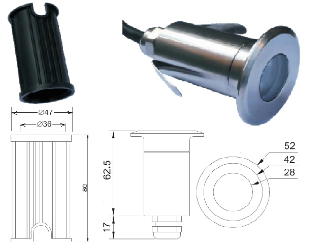 Celonerezové podvodní světlo LED na držáku pro upevnění.